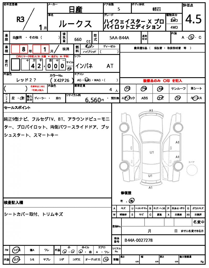 | Grade | ハイウェイスター X プロパイロットエディション | Model Code | 5AA-B44A |