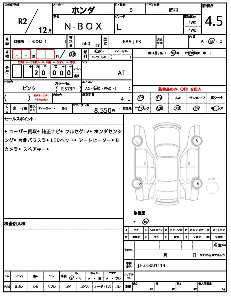| Registration Date | 2020/12 | Chassis Number | JF3-5001114 |