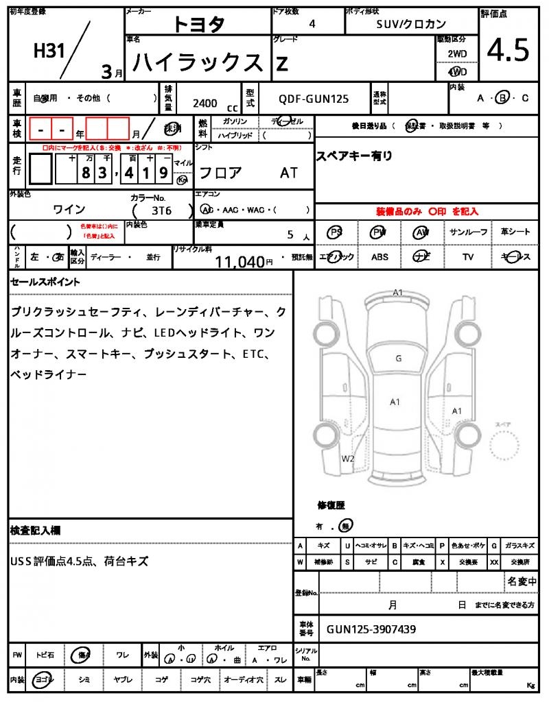 | Mileage | 83,419 km | Engine Size | 2,400 cc |