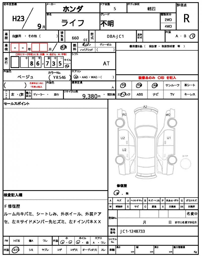 | Grade | 不明 | Model Code | DBA-JC1 |