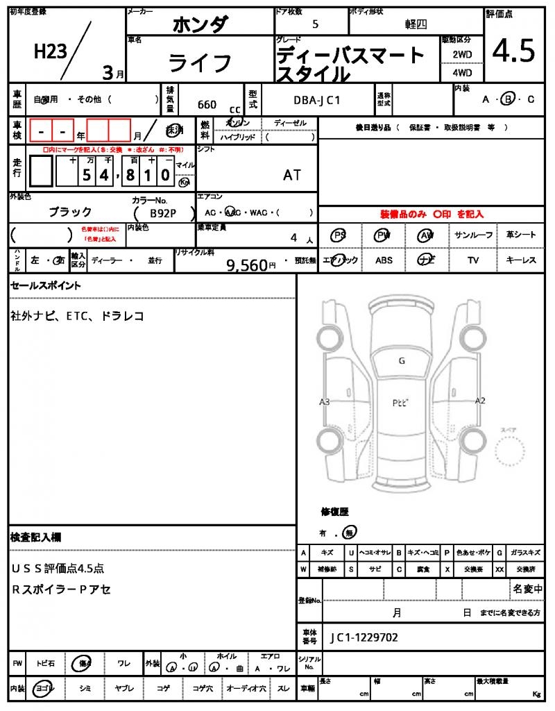 | Mileage | 54,810 km | Engine Size | 660 cc |
