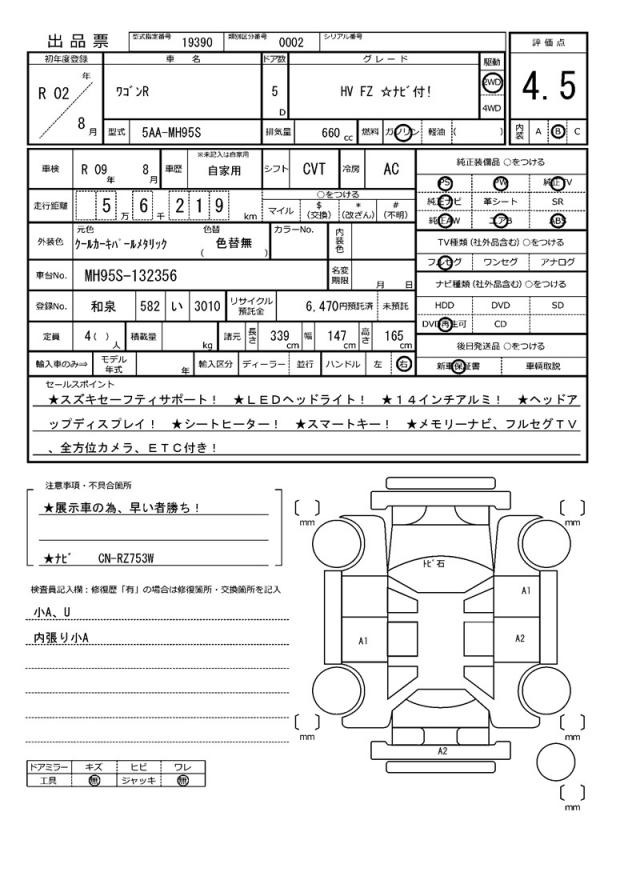 | Grade | HV FZ ☆ナビ付! | Model Code | 5AA-MH95S |