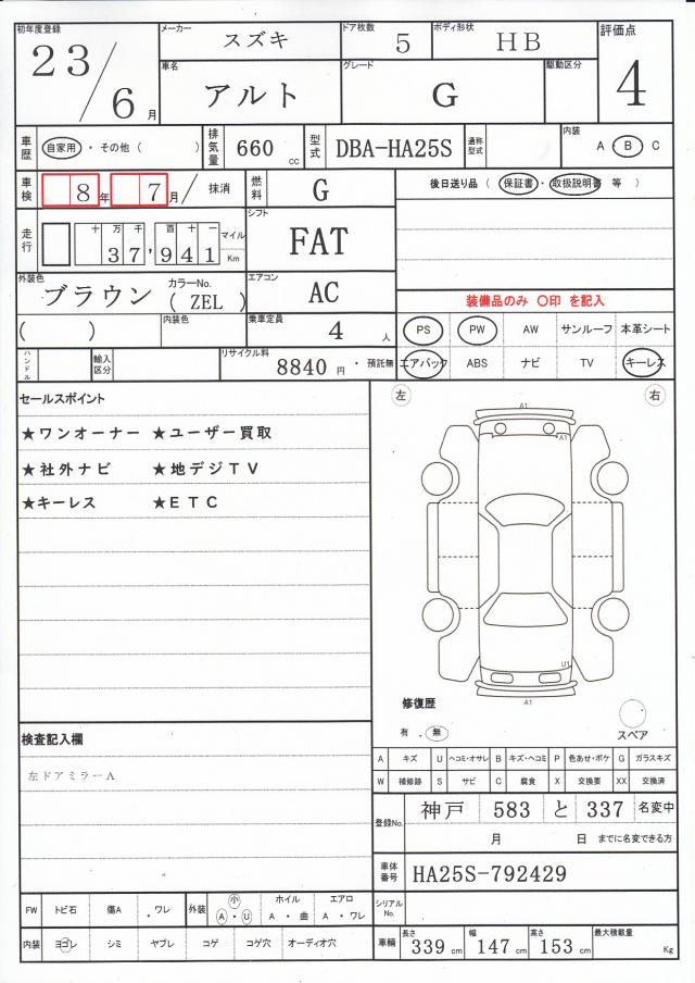 | Registration Date | 2011/06 | Chassis Number | HA25S-792429 |