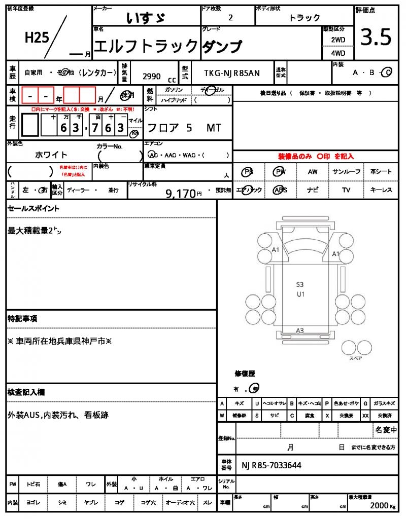 | Grade | ダンプ | Model Code | TKG-NJR85AN |