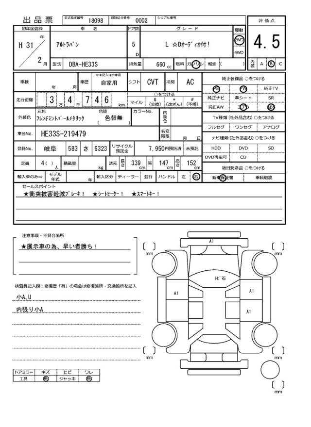 | Grade | L ☆Dオーディオ付! | Model Code | DBA-HE33S |