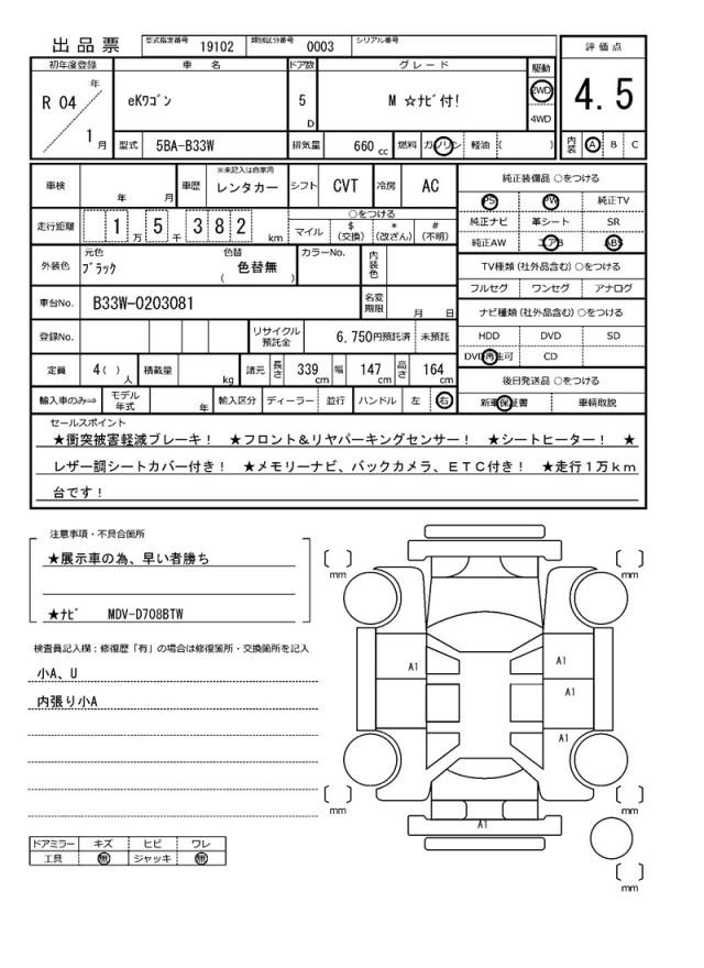 | Grade | M ☆ナビ付! | Model Code | 5BA-B33W |