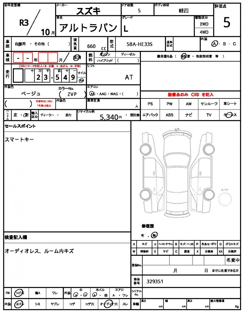 | Manufacturer | SUZUKI | Model | ALTO LAPIN |