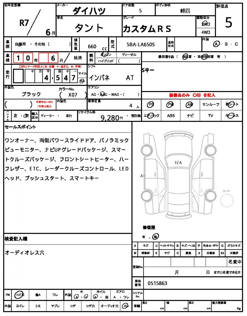 | Grade | カスタムRS | Model Code | 5BA-LA650S |