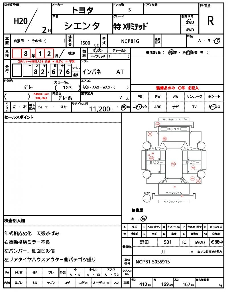 | Grade | 特 Xリミテッド | Model Code | NCP81G |