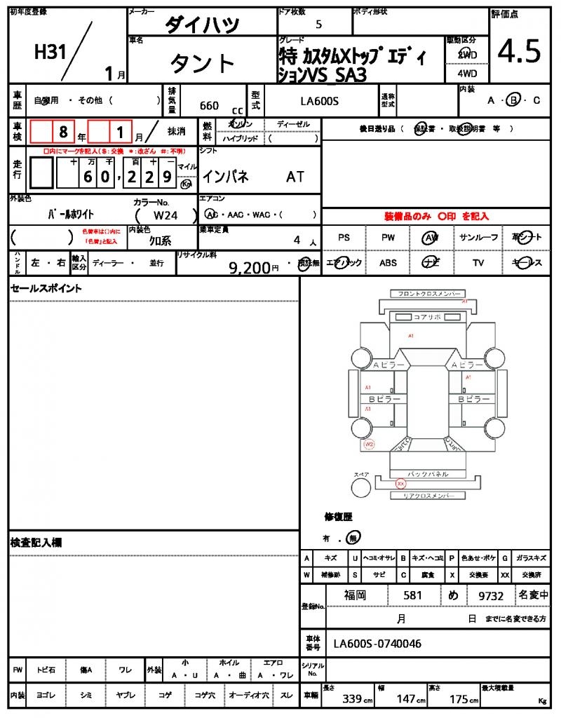 | Grade | 特 カスタムXトップエディションVS_SA3 | Model Code | LA600S |