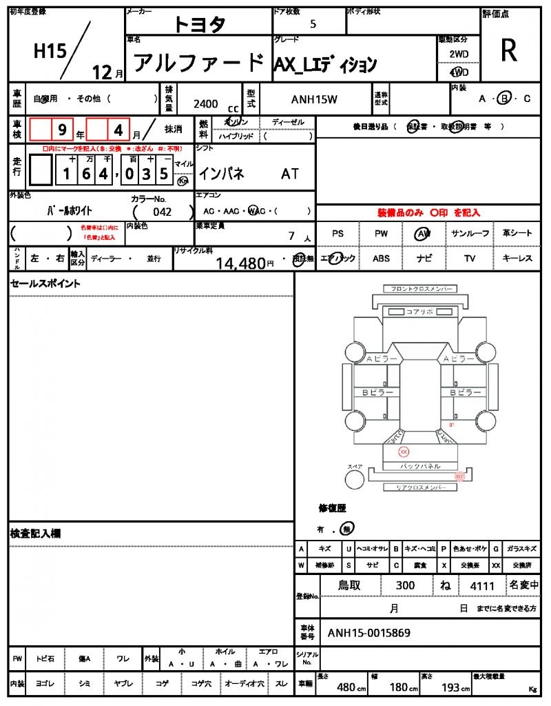 | Grade | AX_Lエディション | Model Code | ANH15W |