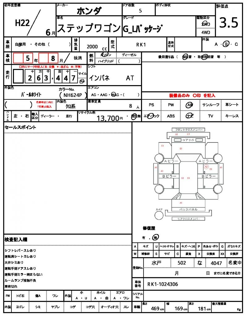 | Registration Date | 2010/06 | Chassis Number | RK1-1024306 |