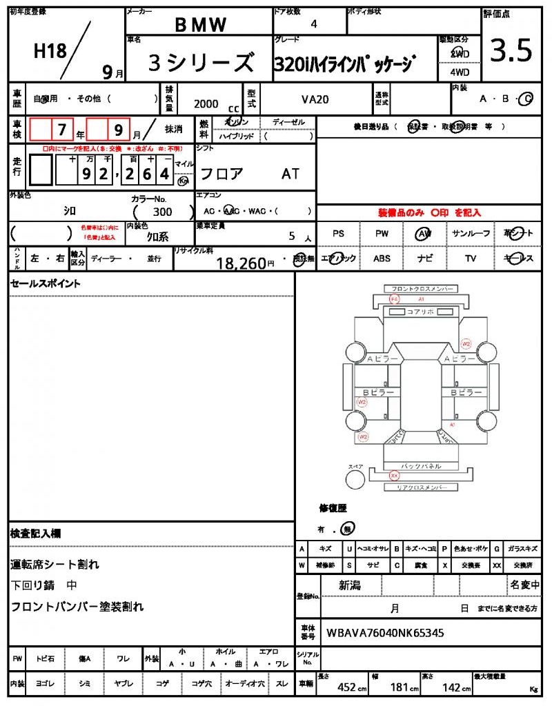 | Registration Date | 2006/09 | Chassis Number | WBAVA76040NK65345 |