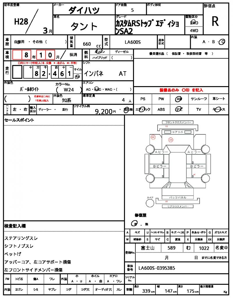 | Grade | カスタムRSトップエディションSA2 | Model Code | LA600S |