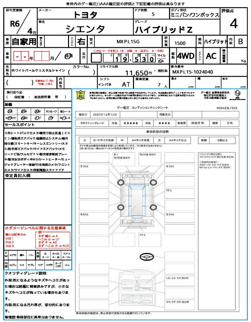 | Grade | ハイブリッドZ | Model Code | MXPL15G |