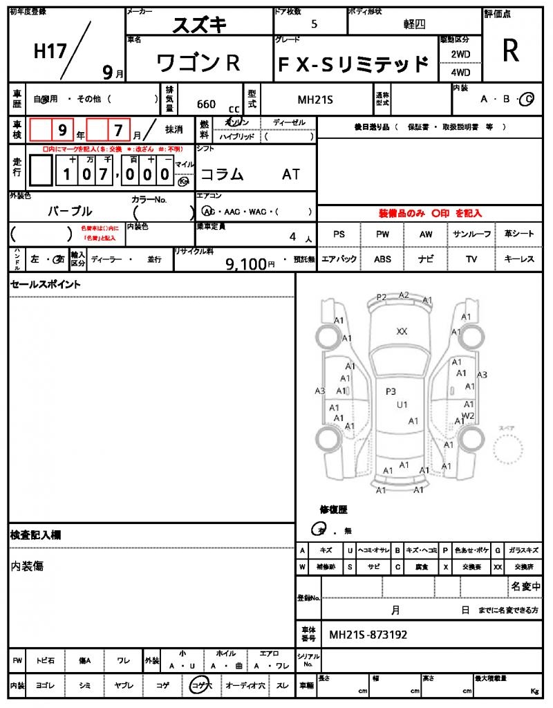| Grade | FX−Sリミテッド | Model Code | MH21S |