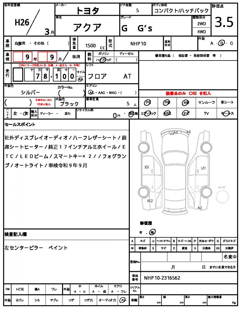 | Manufacturer | TOYOTA | Model | AQUA |