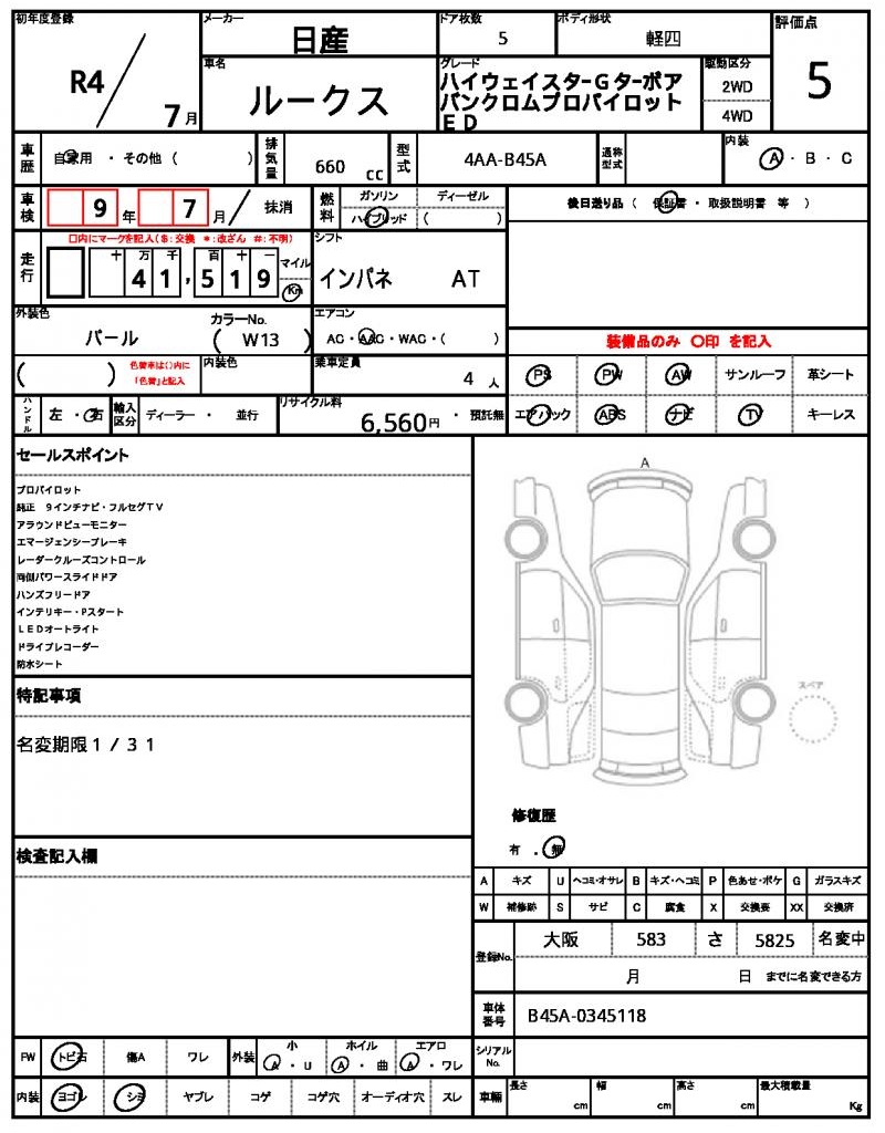 | Grade | ハイウェイスターGターボアバンクロムプロパイロットED | Model Code | 4AA-B45A |