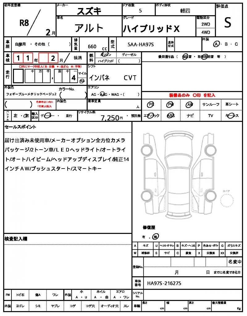 | Grade | ハイブリッドX | Model Code | 5AA-HA97S |