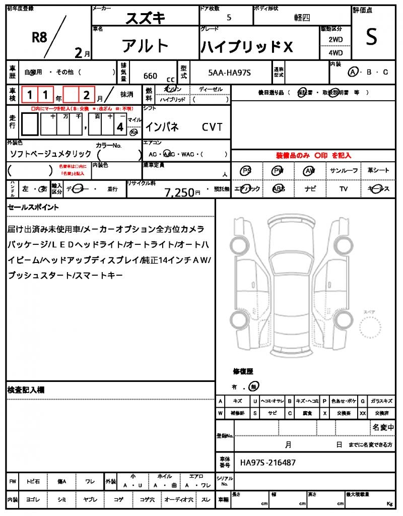 | Grade | ハイブリッドX | Model Code | 5AA-HA97S |