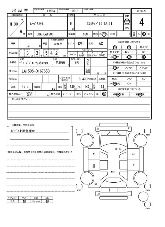 | Grade | Xリミテッド? SA? | Model Code | DBA-LA150S |
