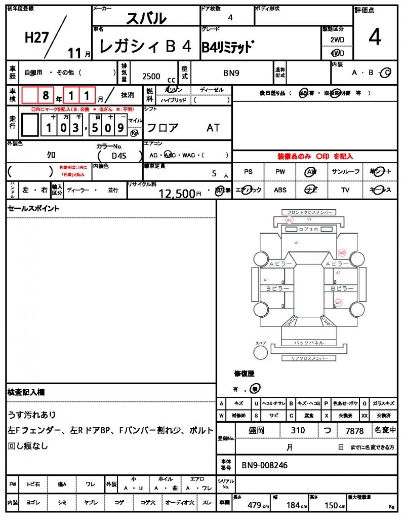 | Manufacturer | SUBARU | Model | LEGACY B4 |