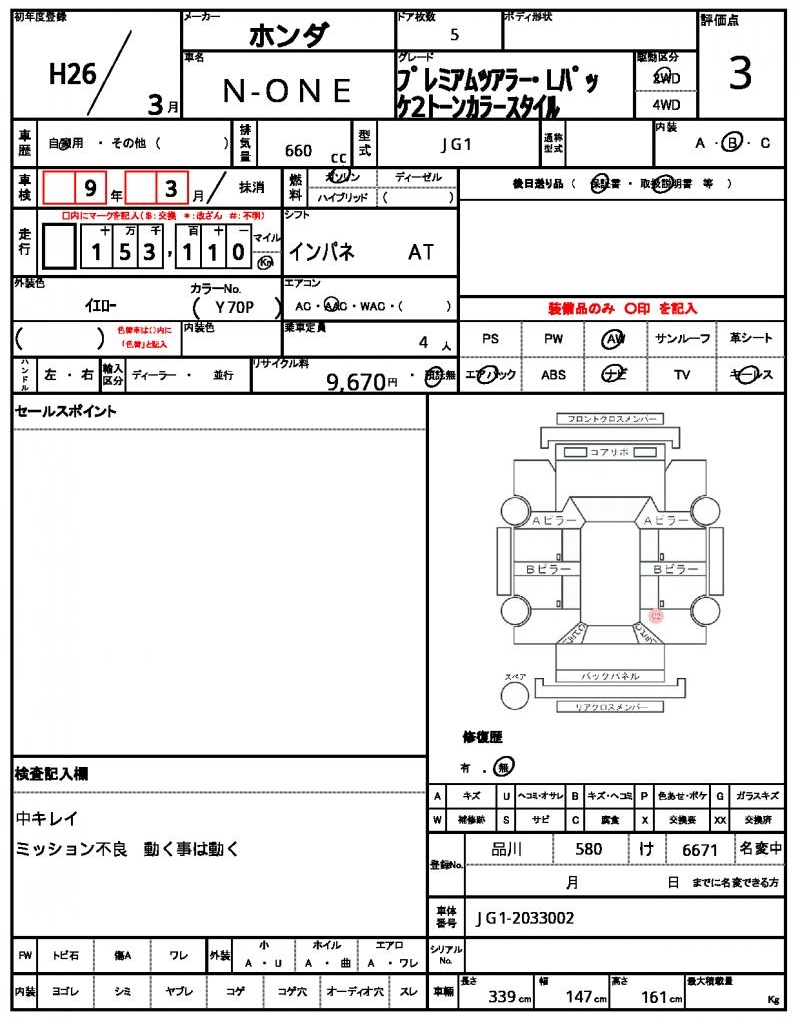 | Manufacturer | HONDA | Model | N-ONE |