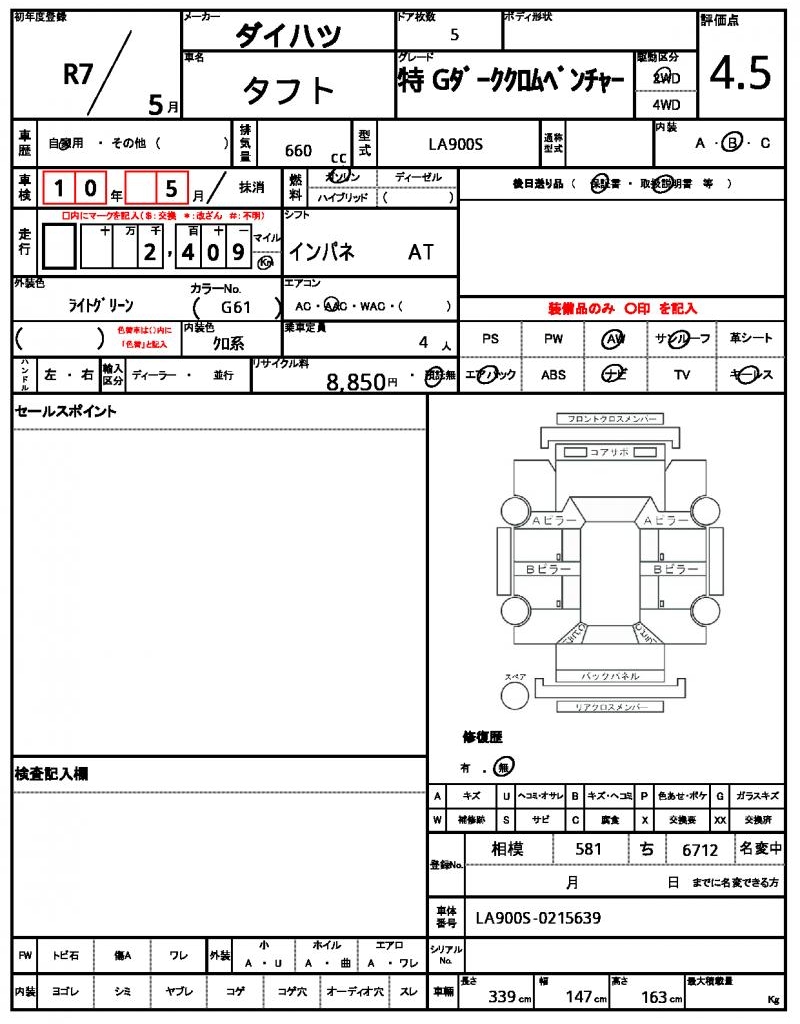 | Manufacturer | DAIHATSU | Model | TAFT |