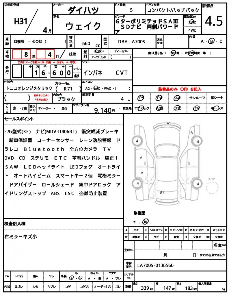 | Registration Date | 2019/04 | Chassis Number | LA700S-0136560 |