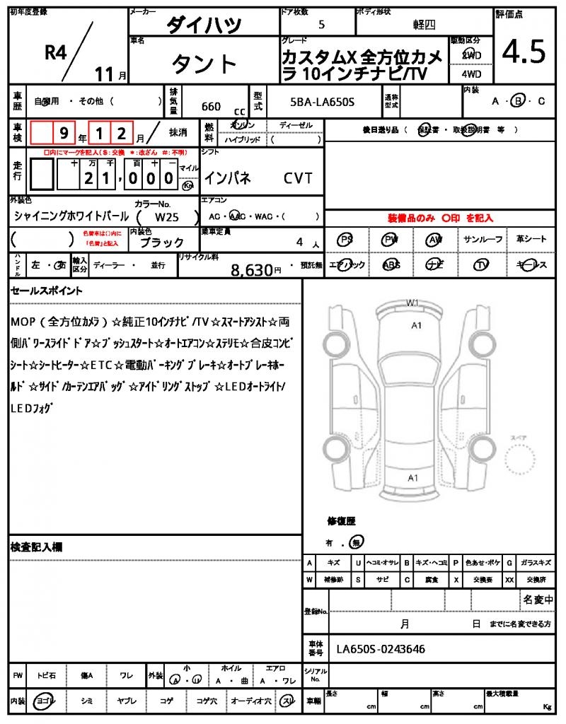 | Grade | カスタムX | Model Code | 5BA-LA650S |