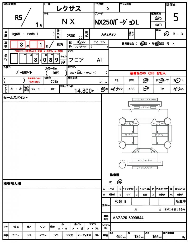 | Grade | NX250バージョンL | Model Code | AAZA20 |
