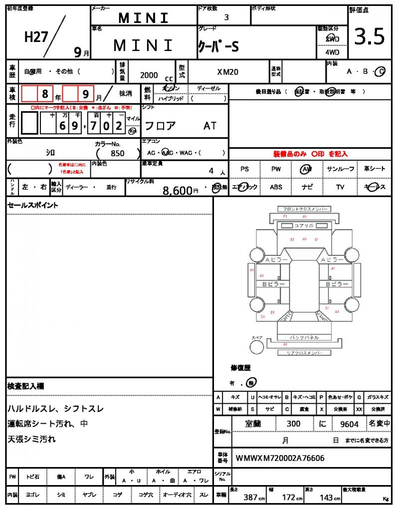| Registration Date | 2015/09 | Chassis Number | WMWXM720002A76606 |