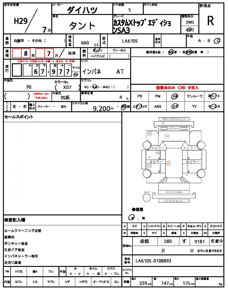| Grade | カスタムXトップエディションSA3 | Model Code | LA610S |
