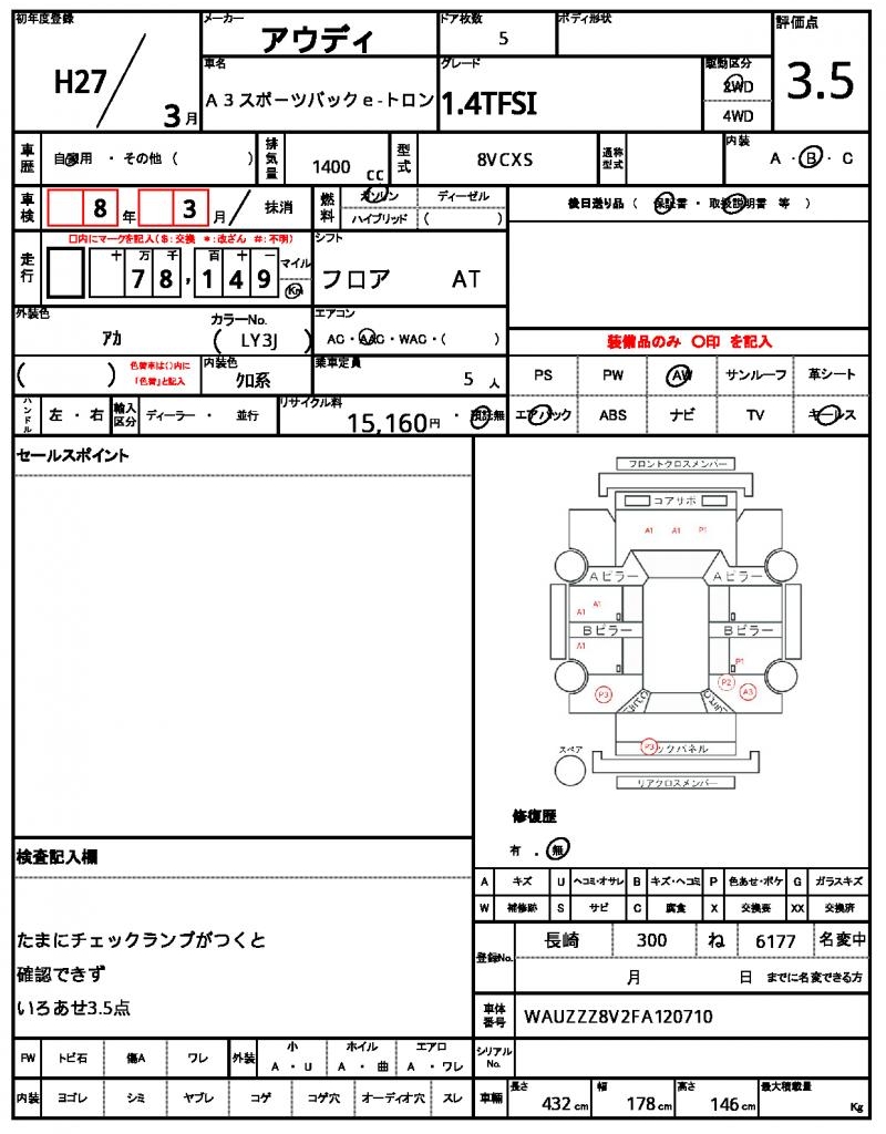 | Registration Date | 2015/03 | Chassis Number | WAUZZZ8V2FA120710 |