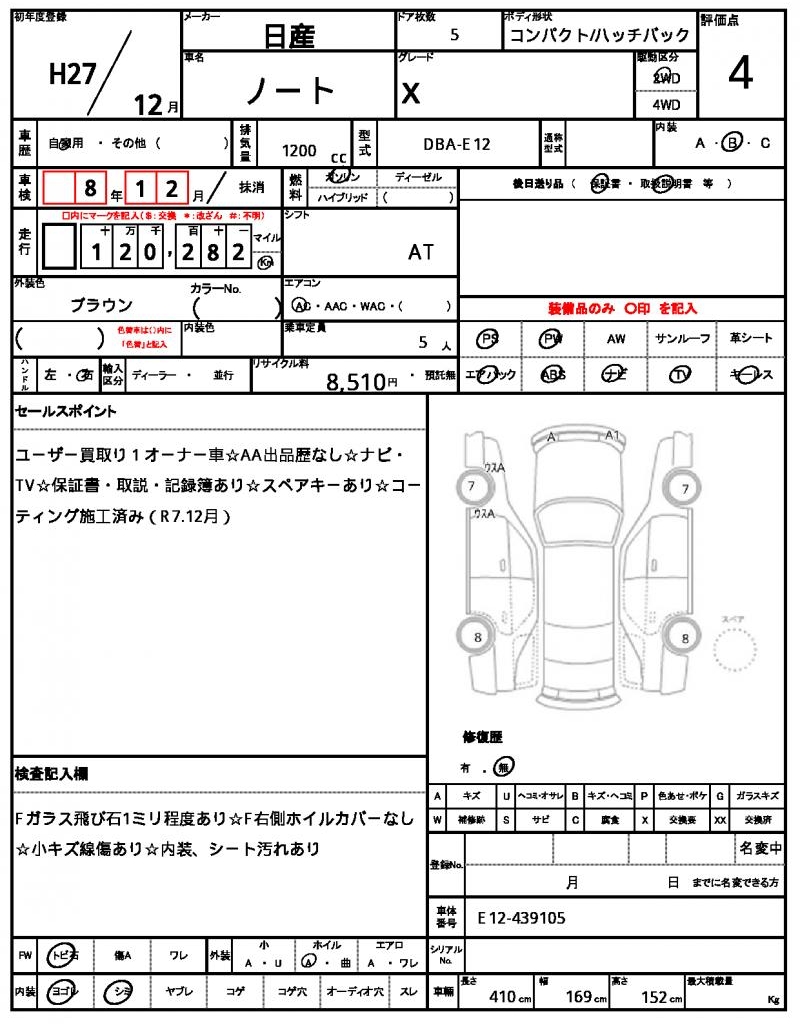 | Manufacturer | NISSAN | Model | NOTE |