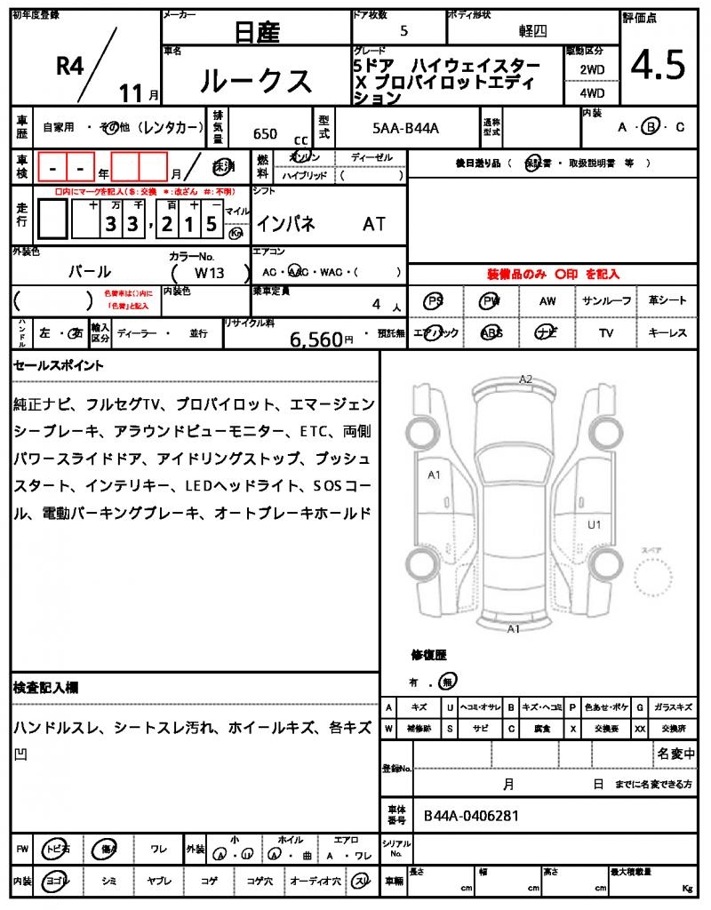 | Grade | 5ドア ハイウェイスター X プロパイロットエディション | Model Code | 5AA-B44A |