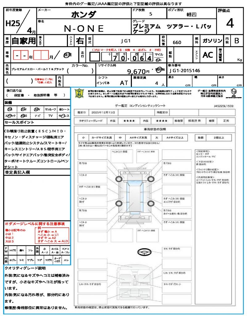 | Grade | プレミアム ツアラー・Lパッケージ | Model Code | JG1 |