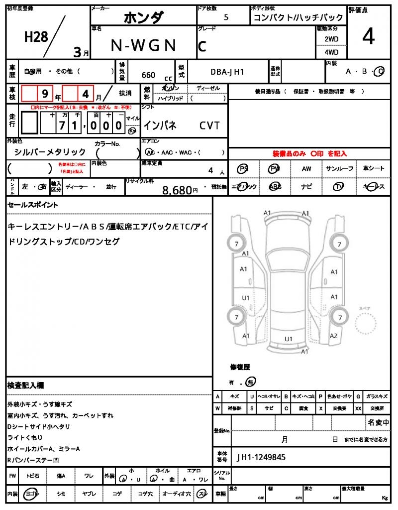 | Registration Date | 2016/03 | Chassis Number | JH1-1249845 |