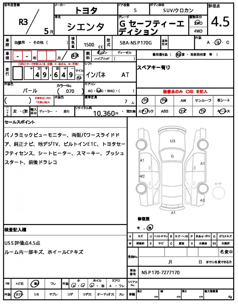 | Manufacturer | TOYOTA | Model | SIENTA |