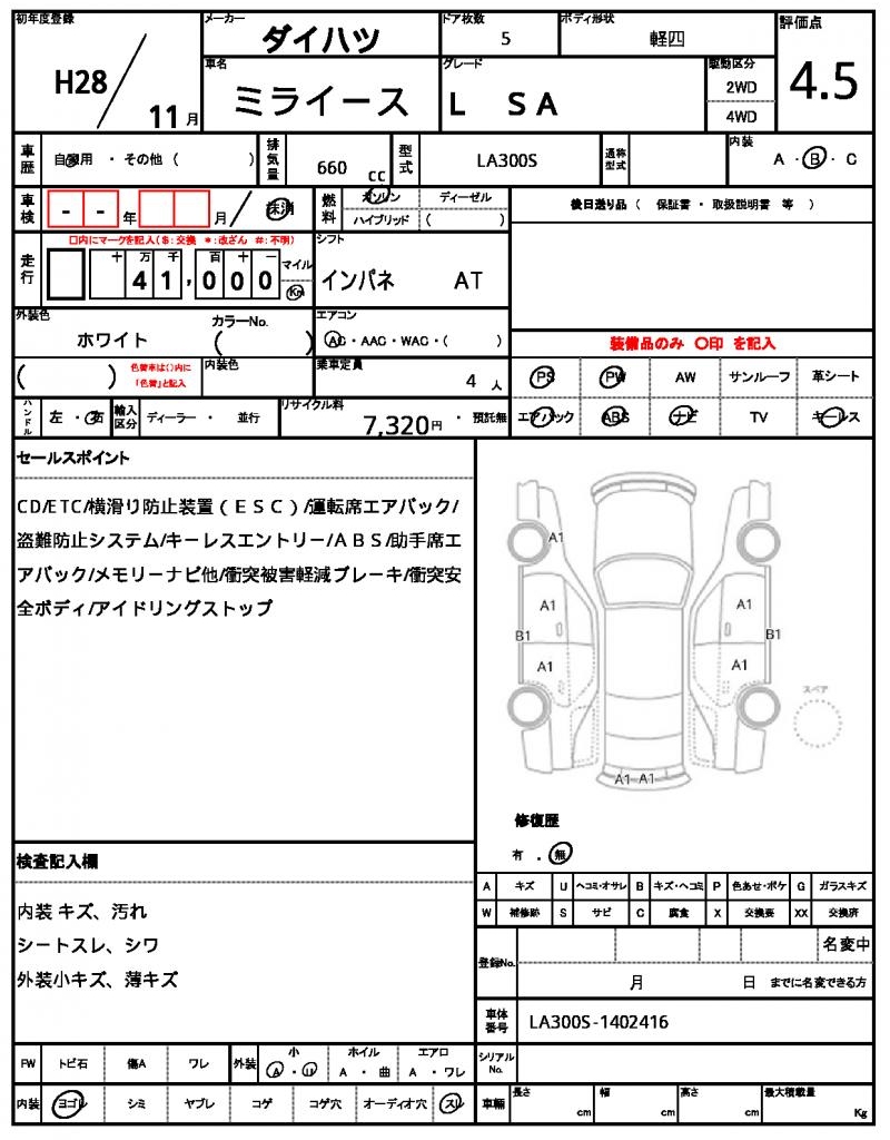 | Registration Date | 2016/11 | Chassis Number | LA300S-1402416 |