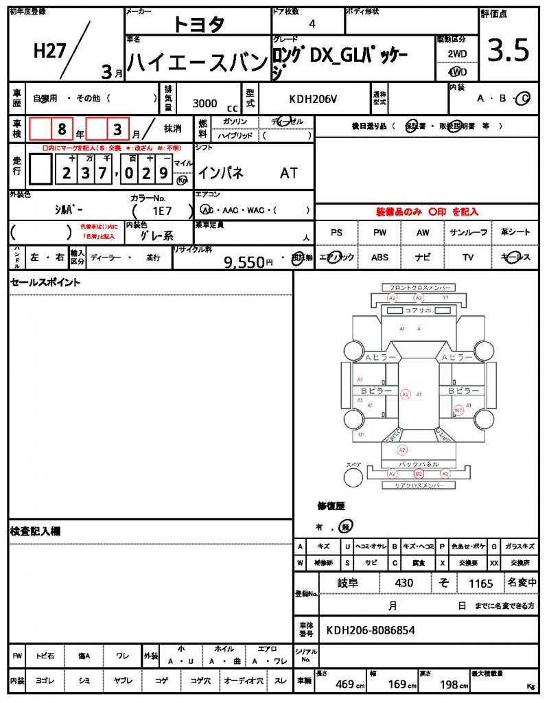 | Registration Date | 2015/03 | Chassis Number | KDH206-8086854 |