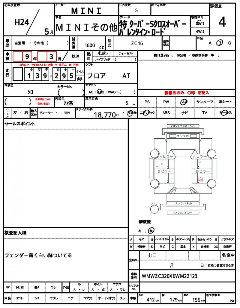 | Grade | 特 クーパーSクロスオーバーバレンタイン・ロード | Model Code | ZC16 |