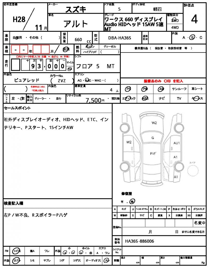 | Grade | ワークス 660 | Model Code | DBA-HA36S |