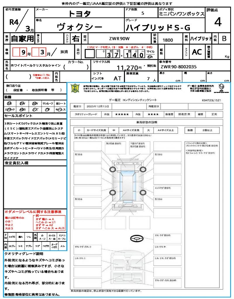| Grade | ハイブリッドS−G | Model Code | ZWR90W |