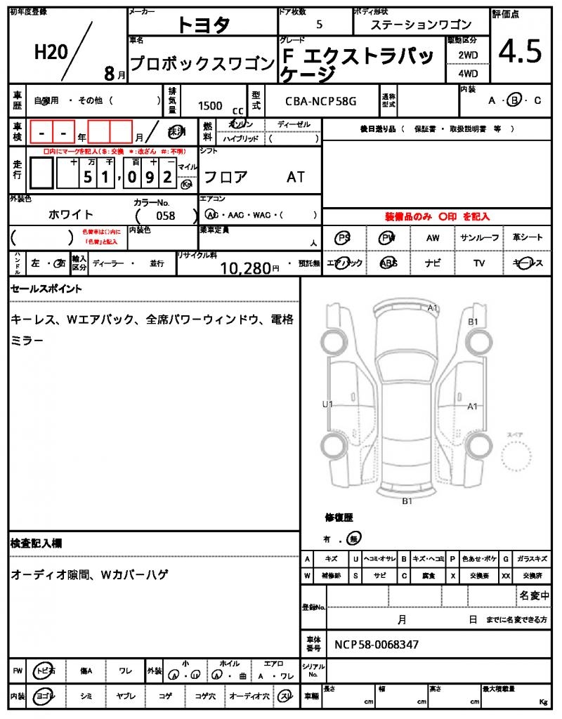 | Manufacturer | TOYOTA | Model | PROBOX WAGON |