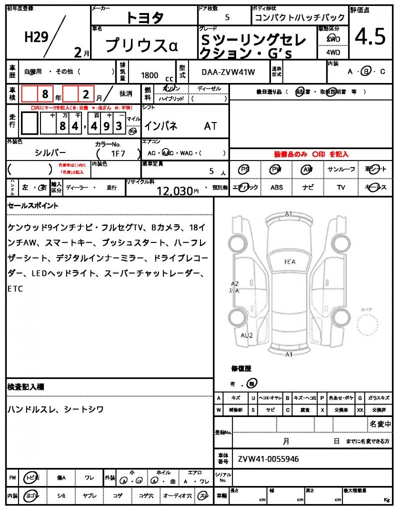 | Grade | Sツーリングセレクション・G’s | Model Code | DAA-ZVW41W |