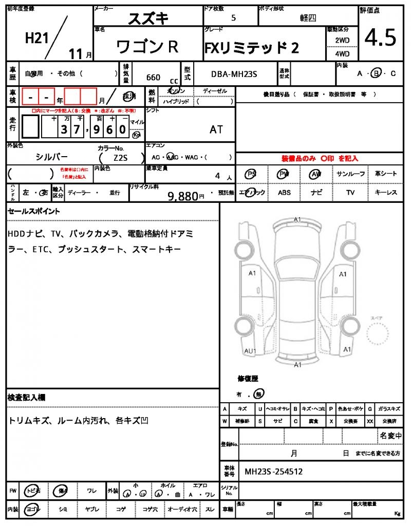 | Grade | FXリミテッド 2 | Model Code | DBA-MH23S |