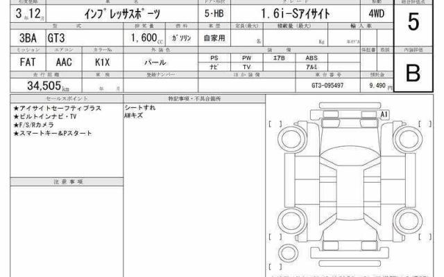 | Grade | 1.6i−Sアイサイト | Model Code | 3BA-GT3 |