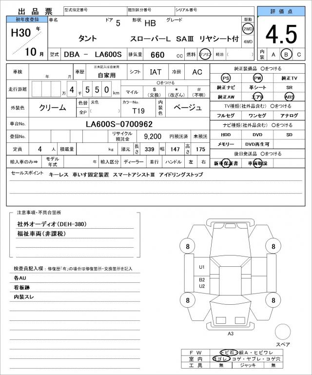 | Grade | スローパーL SA? リヤシート付 | Model Code | DBA-LA600S |
