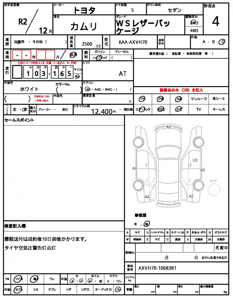 | Grade | WSレザーパッケージ | Model Code | 6AA-AXVH70 |